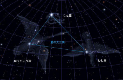 また、「夏の大三角形」を南の空に見ることができました。(下図)