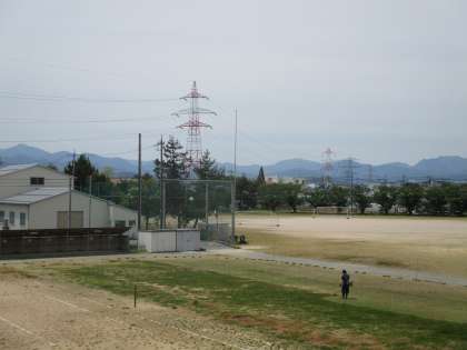 ところで、写真の送電線は興南中学校校区を横切っています。