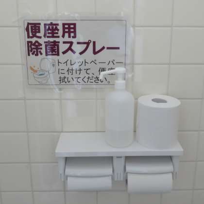 校舎内のすべてのトイレに「便座用除菌スプレー」を設置しました。