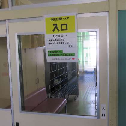 今まで保健室の入り口は右側の1箇所でしたが、25日(月)からは、左側と右側の2箇所を使います。