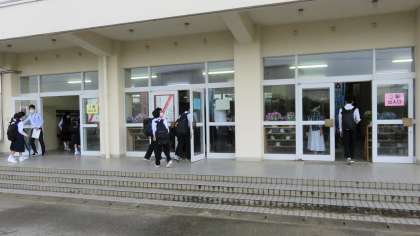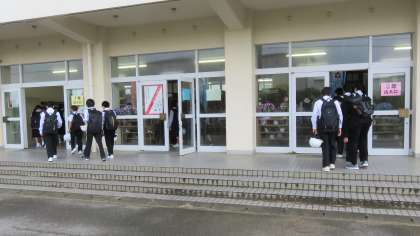 7:55から8:10までが登校ですが、少し早めに登校してきた生徒が増えてきたので、10分前の7:45に生徒玄関を解錠しました。