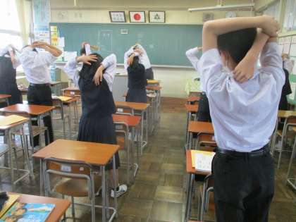 2年・授業を工夫しています! 公開日 2020/05/26 更新日 2020/05/26 今日の興南中 5月25日(月) 2限 体育の授業は、体育館ではなく、教室内でストレッチなど、自宅でもできるトレーニング方法を紹介しています。 (写真:2年2組)