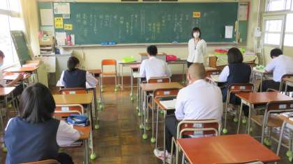 授業に集中しています! 公開日 2020/05/26 更新日 2020/05/26 今日の興南中 5月26日(火) 3限 分散登校2日目になり、少しずつ授業も定着してきました。 (写真 上:1年1組の英語の授業) (写真 中:2年2組の理科の授業) (写真 下:3年3組の国語の授業) どの学年も授業に集中しています!