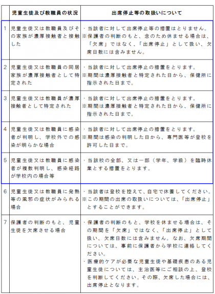 学校再開後の出席停止の取り扱い をクリックしてご覧ください。