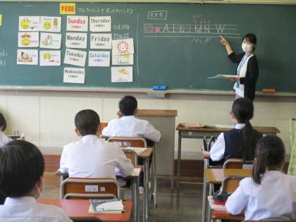 (写真 中:1年2組 初めての英語の授業 アルファベットの学習)