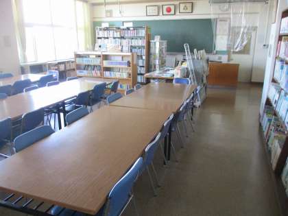 (写真 中:図書室 たくさんの本が貸し出しを待っています)