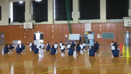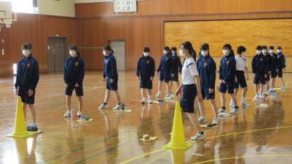 やっぱり体育は体を動かすことでしょ! 公開日 2020/06/01 更新日 2020/06/01 今日の興南中 6月1日(月) 3限 2年1組の体育は、体育館で集団行動していました。(写真:下) 徐々に体を動かして、……!
