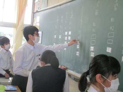 6月1日(月) 1,2限 2年は、学活で「学級目標」と「実践部員」を決めました。 (写真:2年1組のようす)