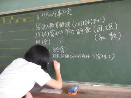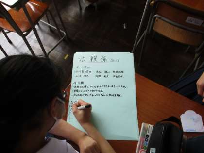 係ポスターを書いたり、連絡黒板を書いたり、色々な活動に取り組んでいます。
