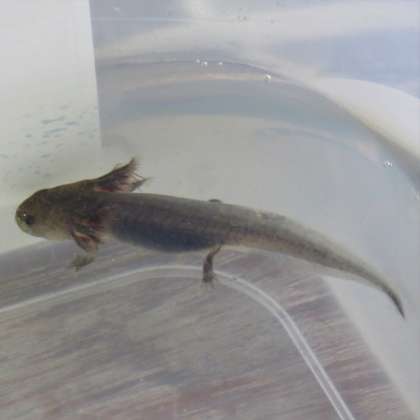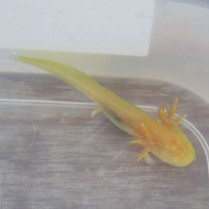 3年1組のウーパールーパーを見に行くと、ウーパールーパーJr.の成長が著しいです。