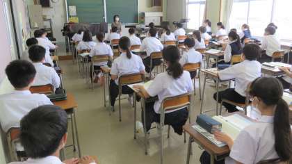分散登校の時はすべての授業を教室で行いましたが、学校が再開し、3密を避けながら教室以外でも授業しています。