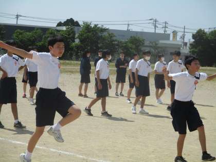 (写真 下:2年3組 体育 走るための動きづくり)