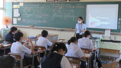 (写真 上:2年1組の理科の授業)