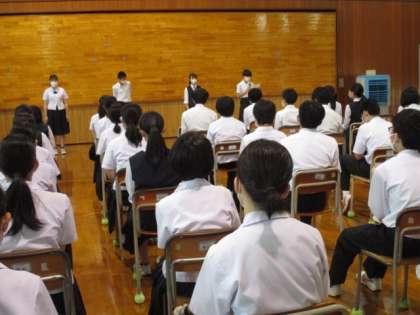 5限は、体育館で学年集会を行いました。