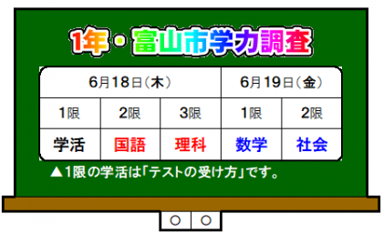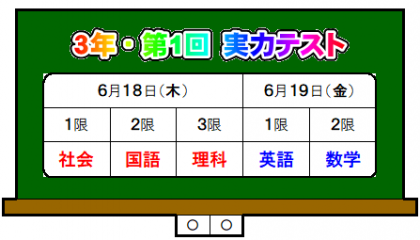 今週末18日、19日は、「1年・市学力調査」「3年・第1回 実力テスト」を行います。