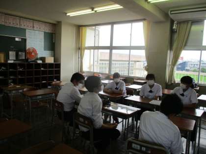 2年・班長会議 公開日 2020/06/15 更新日 2020/06/15 今日の興南中 6月15日(月) 放課後 2年1組は、放課後に班長会議を行いました。 来週の週当番活動の内容について、学級で提案された案をもとに活動計画を立てました。