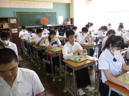 3年・いただきます! 公開日 2020/06/16 更新日 2020/06/16 今日の興南中 6月16日(火) 12:25 スムーズに配膳が終わり、静かな給食時間です。 (写真 上:3年1組 中:3年2組 下:3年3組) しっかり食べて午後からの授業も頑張ります!