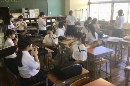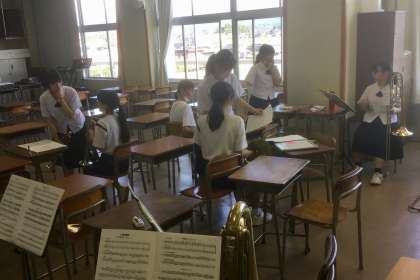 仮入部 その3 公開日 2020/06/17 更新日 2020/06/17 今日の興南中 6月17日(水) 16:00 吹奏楽部は、1年生に2,3年生が優しく教えています。 1年生もすごくうれしそうです!