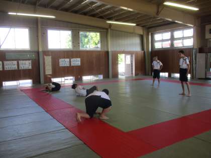 6月17日(水) 柔道部2,3年生が、1年生の受け身を見守っています。