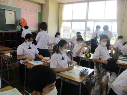 朝学活時に、保健実践部が「さわやかチェック」を行っています。