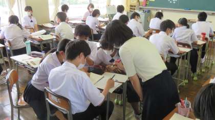 3年・授業風景 公開日 2020/06/25 更新日 2020/06/25 今日の興南中 6月25日(木) 4限 3年生の授業への集中力は高く、さすが3年生です! (写真 上:3年1組の美術の授業) (写真 中:3年2組の理科の授業) (写真 下:3年3組の国語の授業)