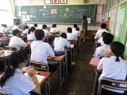 (写真 中:1年2組 数学の授業)