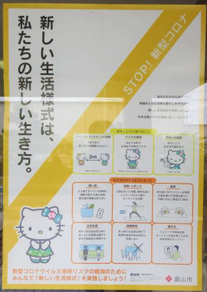 富山市のポスター「STOP! 新型コロナ」が赤色から黄色のポスターに刷新されました。