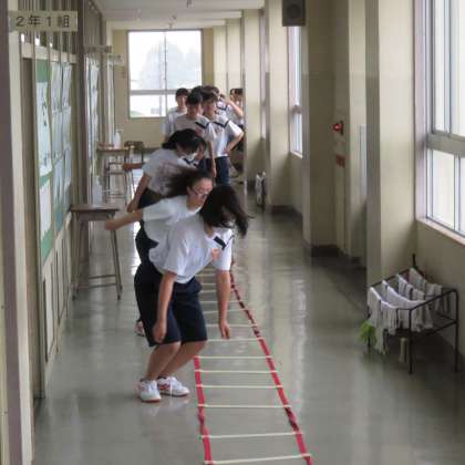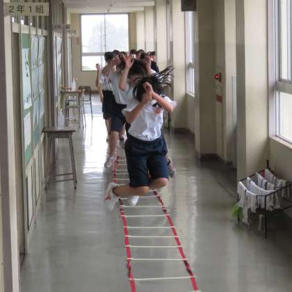 あいにくの雨のため、校舎内でトレーニングです。