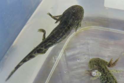 ウーパールーパーJr.(2代目)も順調に成長し、大きいものは10cmぐらいになっています。(写真:中)