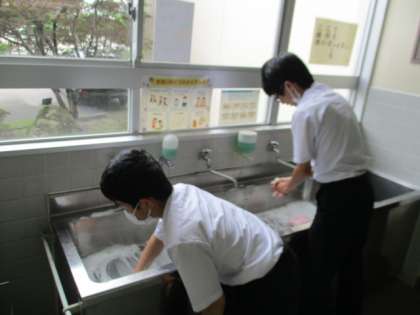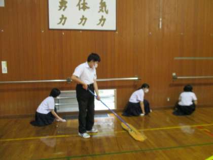 今朝のボランティア活動は、学校中の洗面所の清掃と、体育館の隅をきれいに雑巾がけしています。