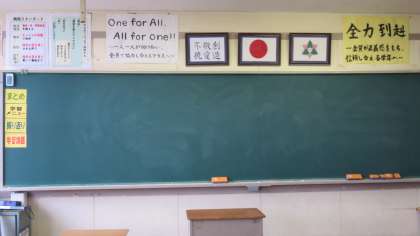 各教室をまわっていると、リニューアルした「興南スタンダード」が黒板左上に掲示してあります。(写真:下)