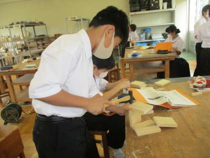 1年・技術・「フラワーポット」製作 公開日 2020/07/10 更新日 2020/07/10 今日の興南中 7月10日(金) 4限 1年の技術科の授業では、木材加工に取り組んでいます。 卓上ボール盤でクギの下穴開けをしたり、ベルトサンダで切断面をきれいにしたりしました。 専門的な作業機械を扱い、安全に作業していました。 (写真:1年2組のようす)
