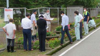 教育後援会の役員の方やグリーンキーパーの方が見守る中、厳正に審査されました。(写真:中)