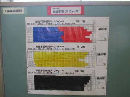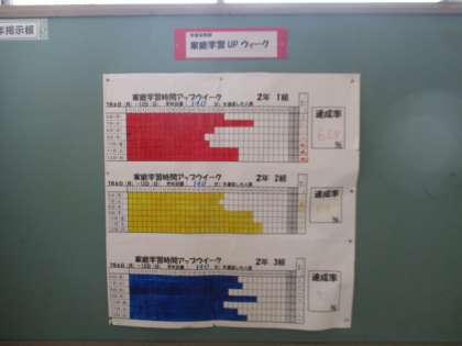 家庭学習時間UPウィーク(学習実践部) 公開日 2020/07/15 更新日 2020/07/15 今日の興南中 7月15日(水) テスト期間中の家庭学習の取り組みを調べました。 今年度初めての定期考査への取り組みはどうだったでしょうか? テストは終わりましたが、家庭学習の手を緩めず、当たり前のように日々机に向かえるといいですね。 (写真 上:1年 中:2年 下:3年)