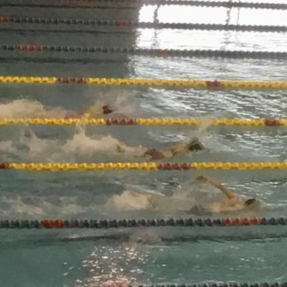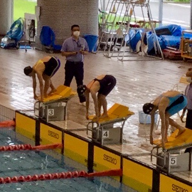 高山さん(3年が、まず50m女子自由形に挑みました!