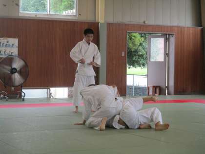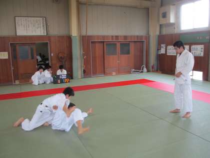 7月23日(木) 10:00 武道場では柔道部が活動しています。 今日は寝技中心の練習を行いました。