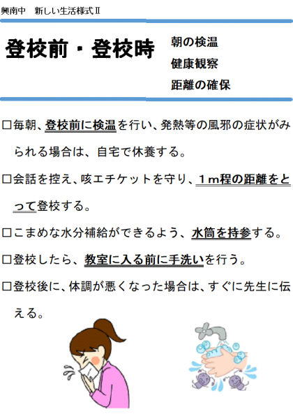 まずは、「登校前・登校時」(上)と「学校生活」(下)です。