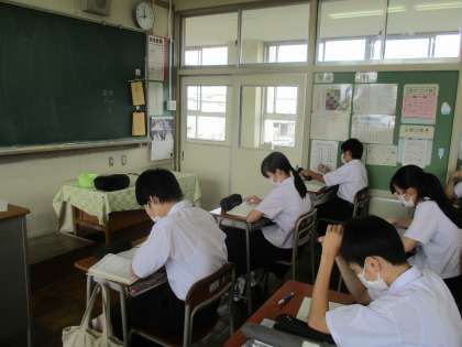 候補の5つの曲を聴いて、どの曲が自分の学級が歌うのにふさわしい曲か選んでいました。