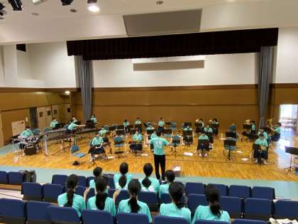 吹奏楽部・ホール練習 公開日 2020/08/01 更新日 2020/08/01 今日の興南中 8月1日(土) 10:00 吹奏楽部は、来週の演奏会に向けて、大久保ふれあいホールで練習をしています。 お互いの音に集中し、気持ちを合わせて合奏します。