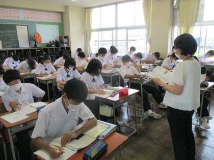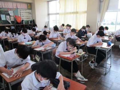 2年・授業風景 公開日 2020/08/03 更新日 2020/08/03 今日の興南中 8月3日(月) 2限 2年生はいつも落ち着いて授業に臨んでいます。 (写真 上:2年1組 音楽 「フーガト短調」の鑑賞をしました) (写真 中:2年2組 理科) (写真 下:2年3組は国語)