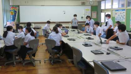 今日から保護者懇談会が始まったので、午後の時間を有効に活用するために、3年・体育大会・団リーダーがコンピュータ室に集まって、研修会を行っていました。(写真:上)