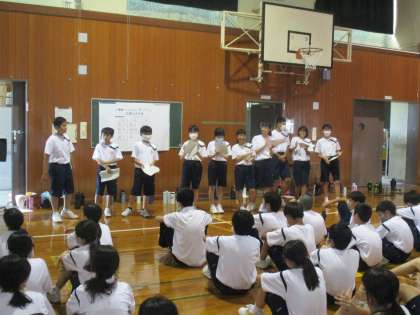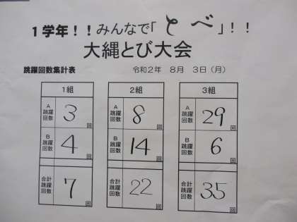 1年・スポーツ大会 その1 公開日 2020/08/03 更新日 2020/08/04 今日の興南中 8月3日(月) 4限 1年・スポーツ大会として、クラス対抗の大縄とび大会を行いました。 たいへん暑い中でしたが、クラスの人たちと協力して大いに盛り上がった大会となりました。 結果・・・1位:3組 2位:2組 3位:1組 体育実践部のみなさん、企画から運営、表彰までどうもありがとう!