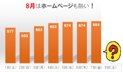 上のグラフは、8月の興南中ホームページへのアクセス数を表しています。