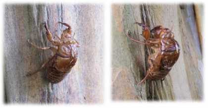 前庭を見ると、たくさんのセミの抜け殻が落ちています。