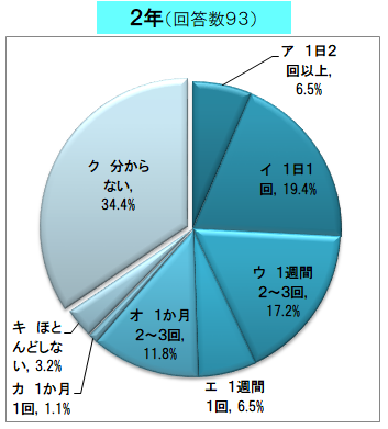 下のグラフを見ても分かるように、約1/3の2年生は「分からない」と答えていますが、1日に1回以上アクセスする保護者は約1/4もいます。
