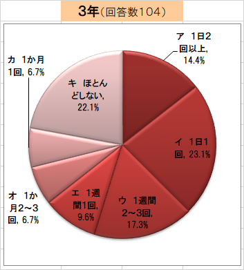 下のグラフを見ても分かるように、ほとんどアクセスしない3年生が約2割いますが、反面、1日に1回以上アクセスする3年生が約4割もいます。