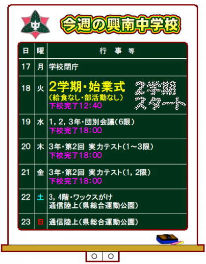 ★今週の興南中学校★