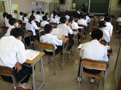 (写真 中:1年2組 音楽の授業 「パフ」)