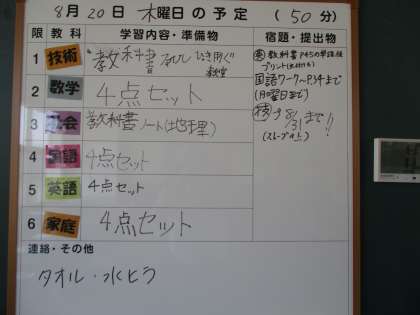 教室の伝達黒板が……! 公開日 2020/08/19 更新日 2020/08/19 今日の興南中 8月19日(水) 17:00 先日のHPでもお伝えした伝達用ホワイトボード黒板が各教室にいきわたり、本日から使っています! 見やすいと生徒からも好評価です!