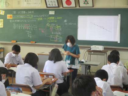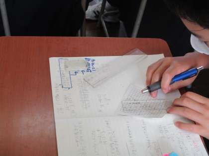 (写真 中・下:2組 数学 数式からグラフを書き込んでいます)